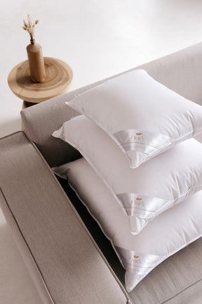 The ZINNIA goose feather pillow is best when purchased together with our line of SILENE pillow protectors. The extra protective layer prevents irritation on the face from goose feather.